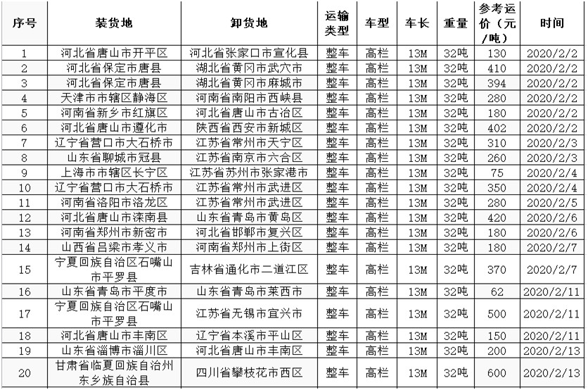 自銀耐聯(lián)平臺物流服務(wù)正式上線以來,目前已得到眾多交易客戶的廣泛關(guān)注和青睞,現(xiàn)陸續(xù)有諸多耐材企業(yè)物流負(fù)責(zé)人通過銀耐聯(lián)平臺物流管理欄目進(jìn)行運(yùn)費(fèi)詢價(jià),并通過平臺實(shí)現(xiàn)了物流交易。以下為部分地區(qū)物流交易參考運(yùn)輸價(jià)格匯總表: